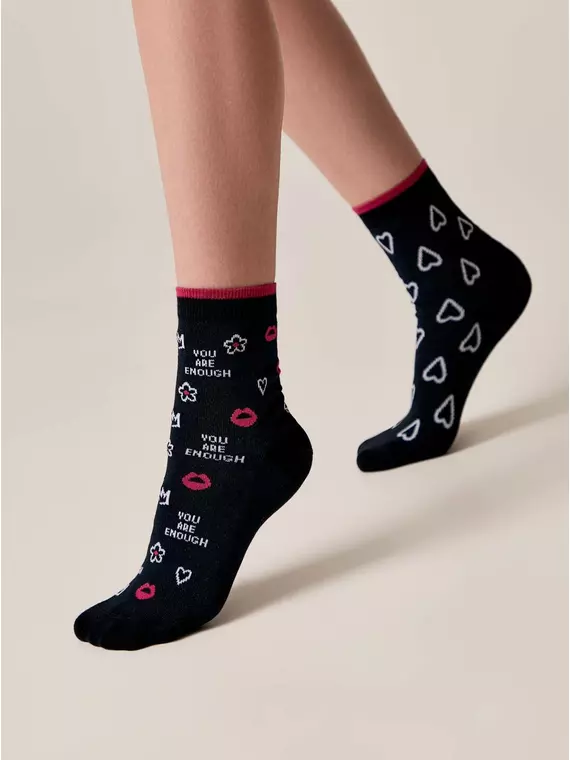 Хлопковые женские носки HAPPY с рисунками "you are enough" 373 темно-синий