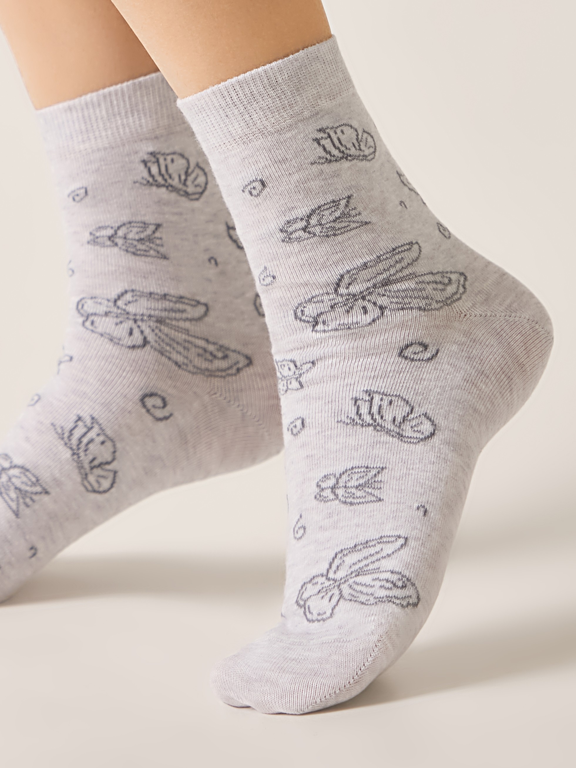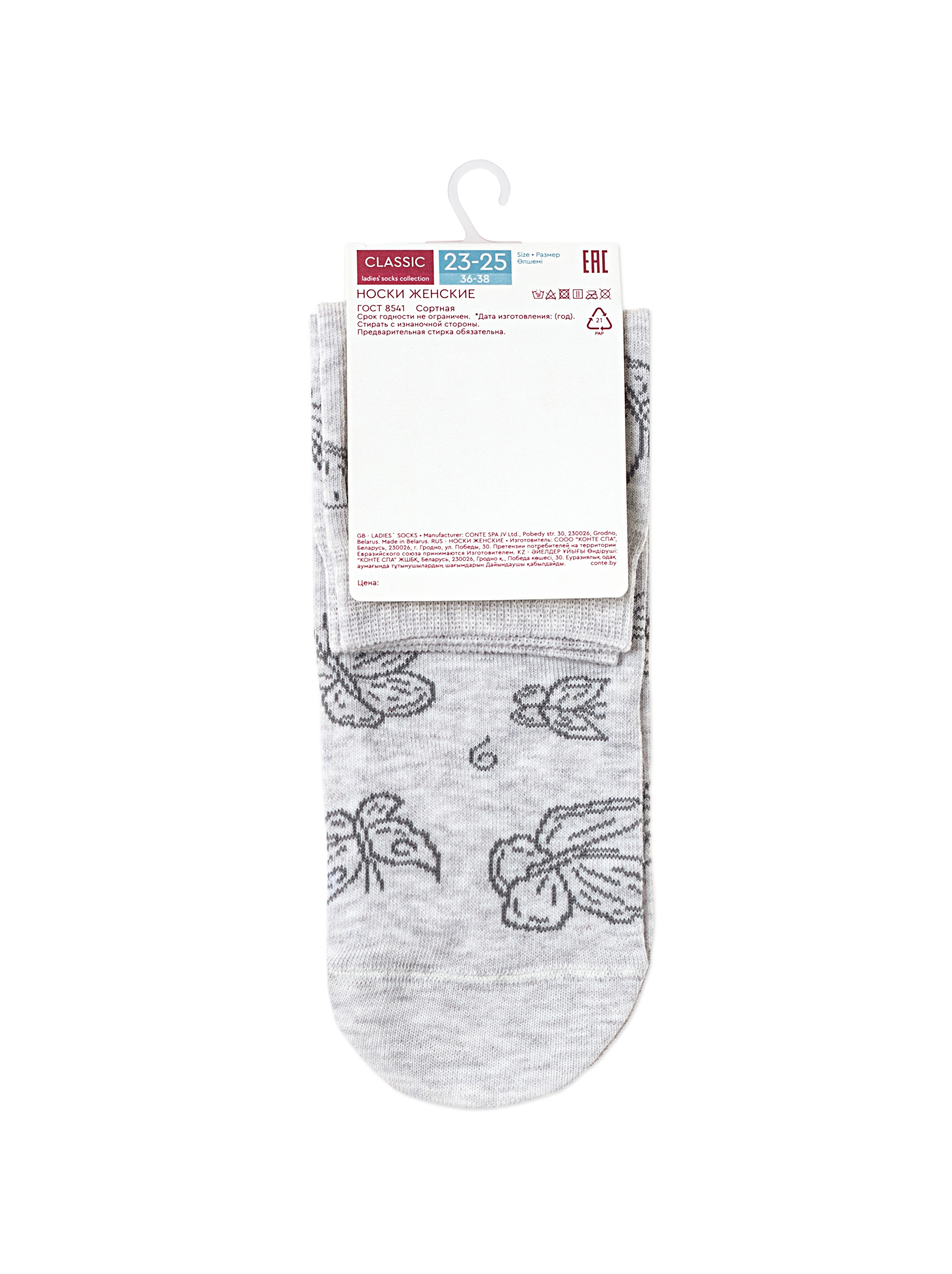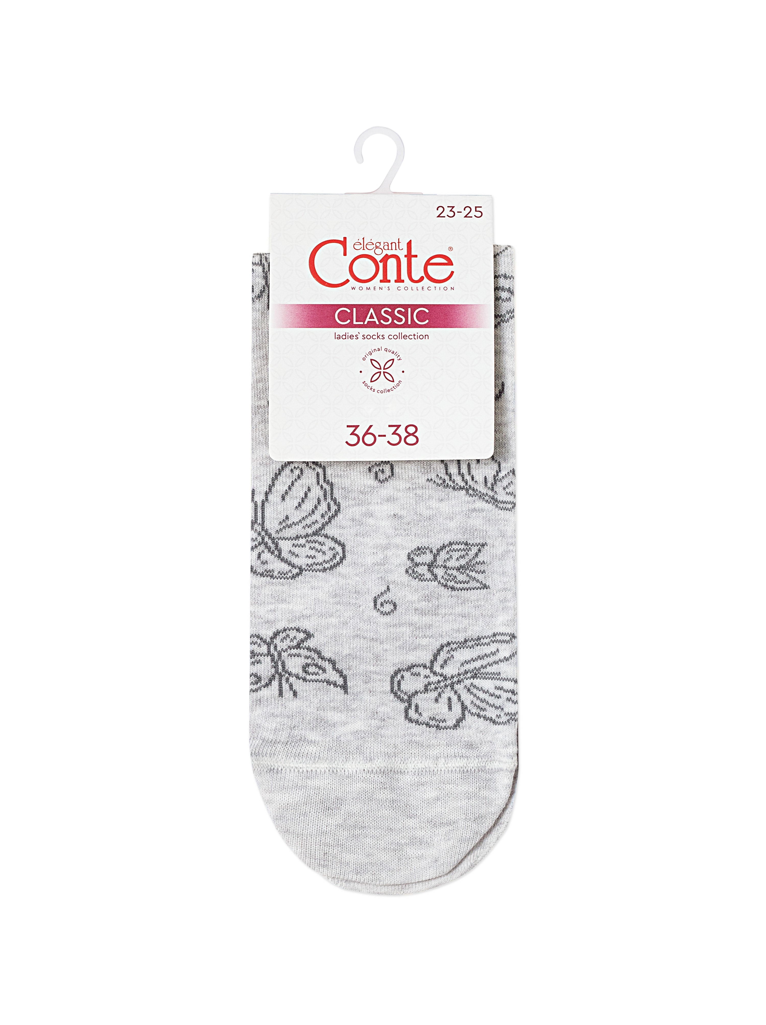Носки женские CONTE CLASSIC 697 светло-серый — классические хлопковые носки с рисунком «бабочки» для повседневной носки. Идеальны для создания элегантных и стильных образов.