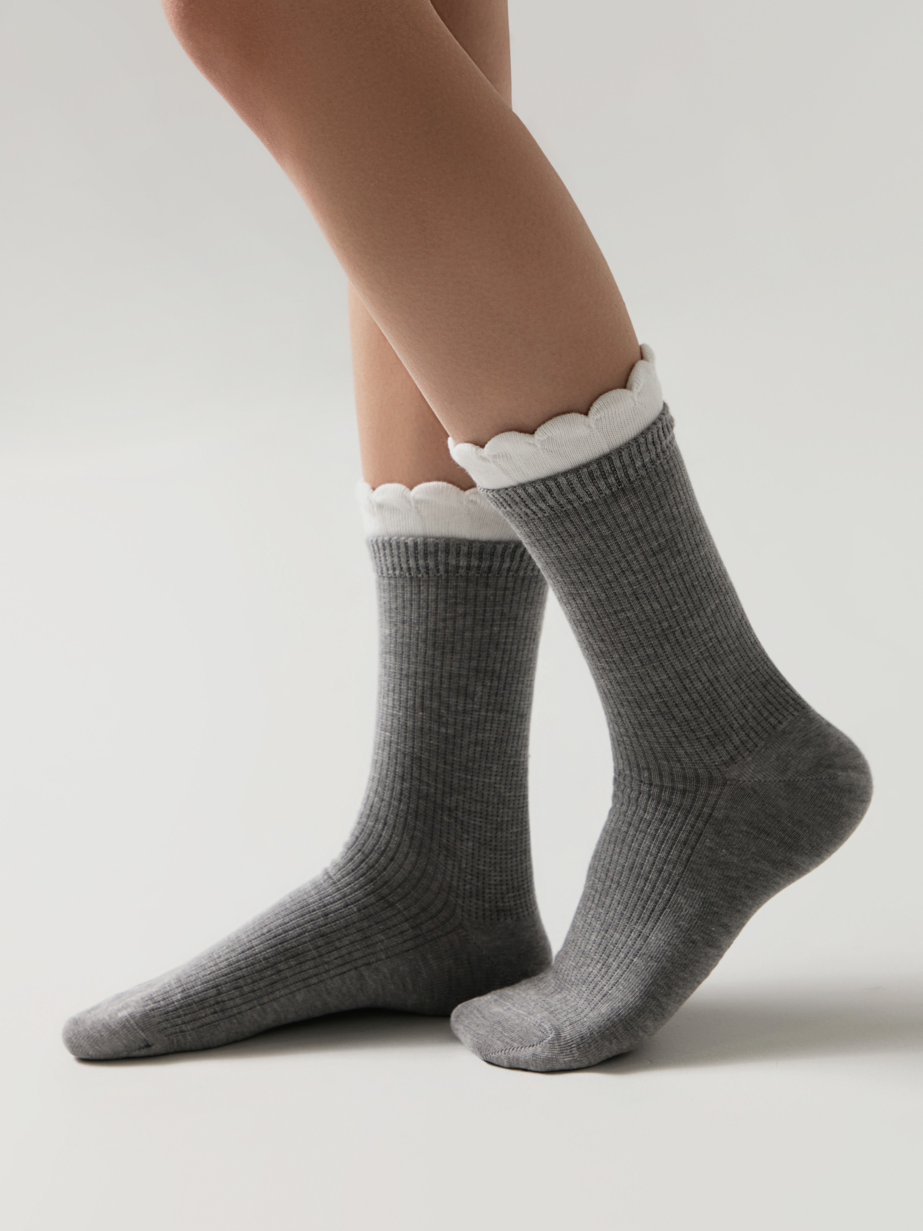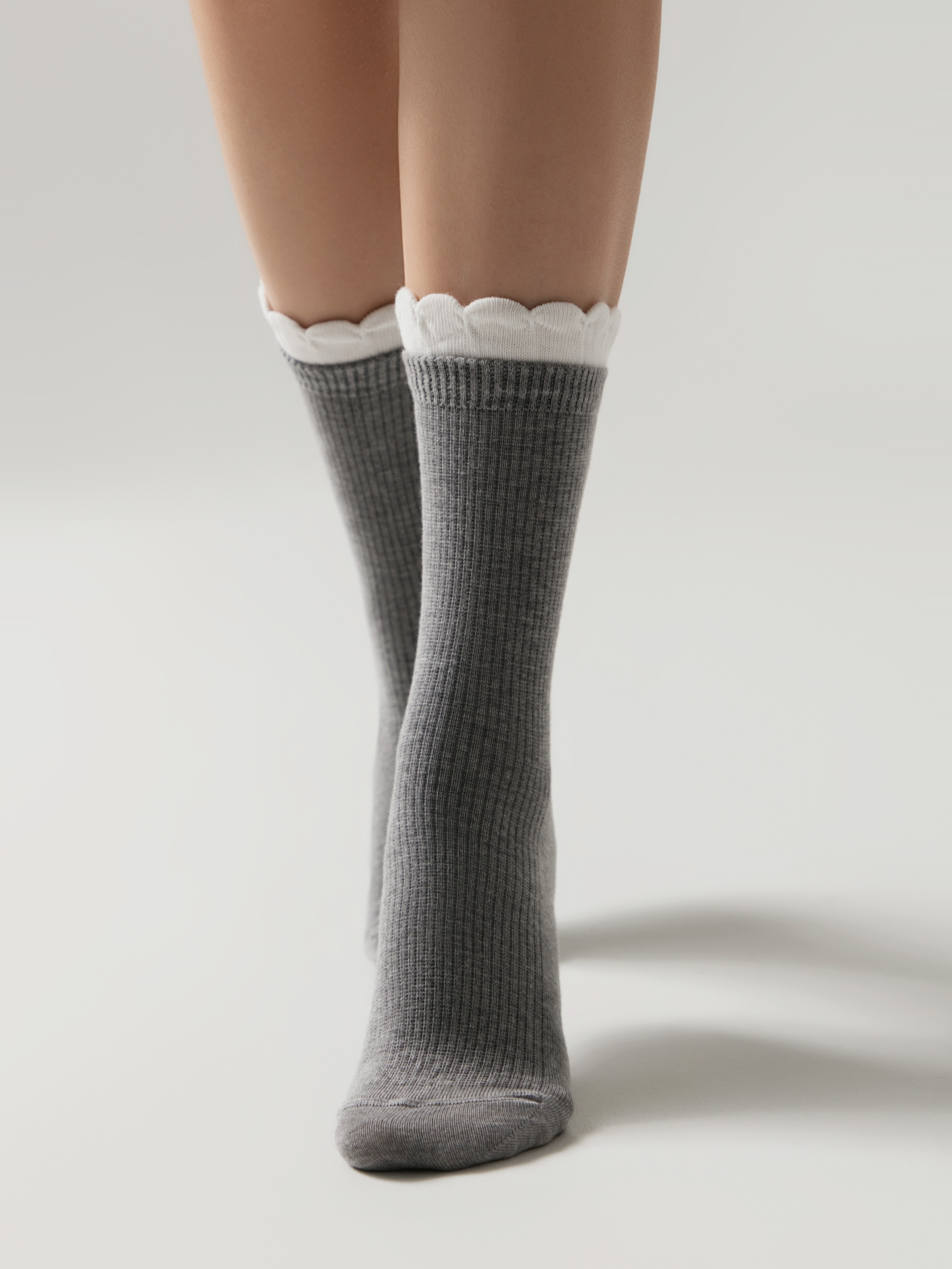 Элегантная деталь «пикот» на резинке превращает классические серые носки в стильный аксессуар. Мягкий хлопок дарит комфорт, а рубчик добавляет текстуру. Идеальны для офиса и повседневной жизни — практичность и женственность в каждой паре.