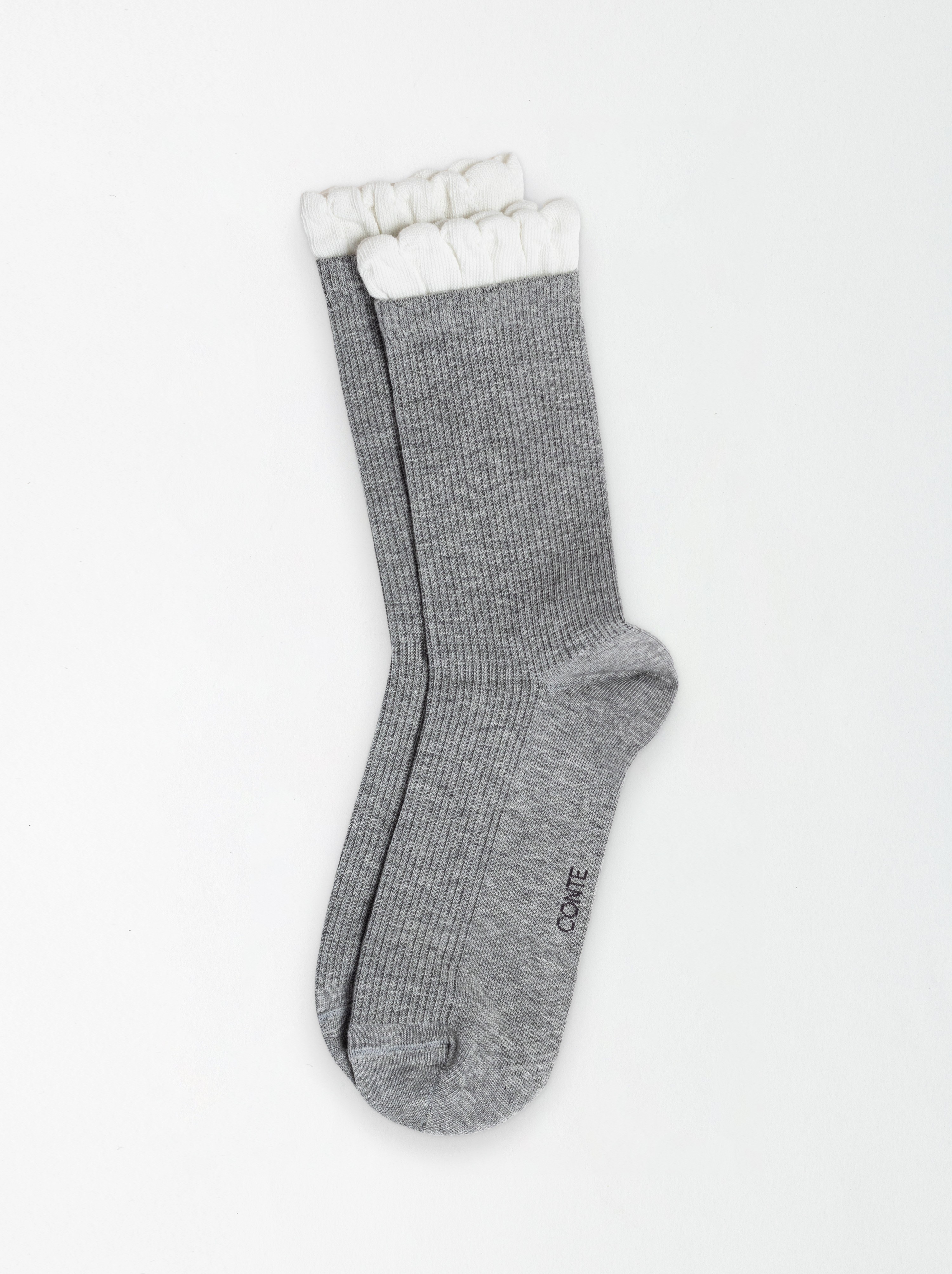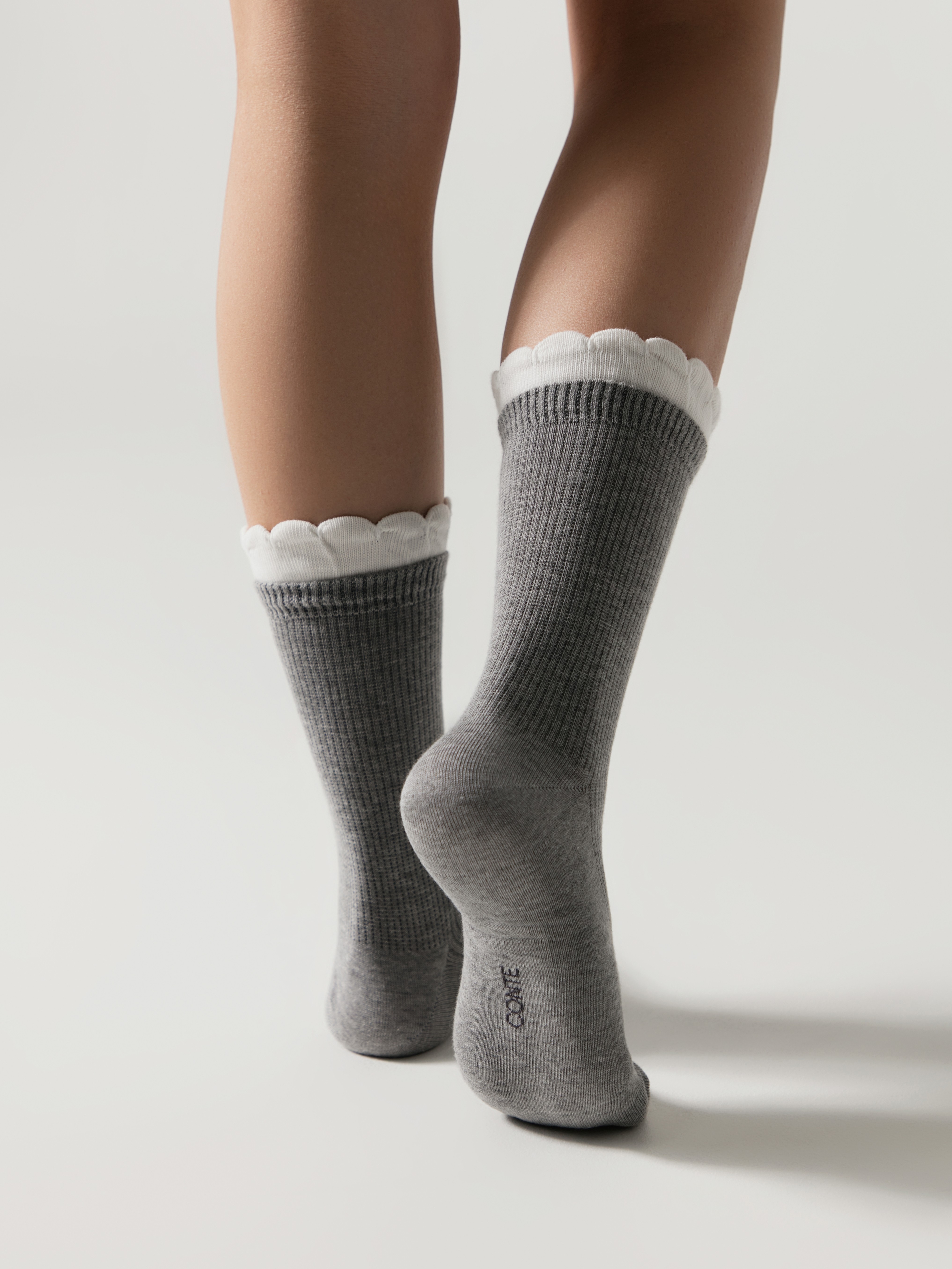 Носки в рубчик с резинкой «пикот» CONTE CLASSIC 967 серый