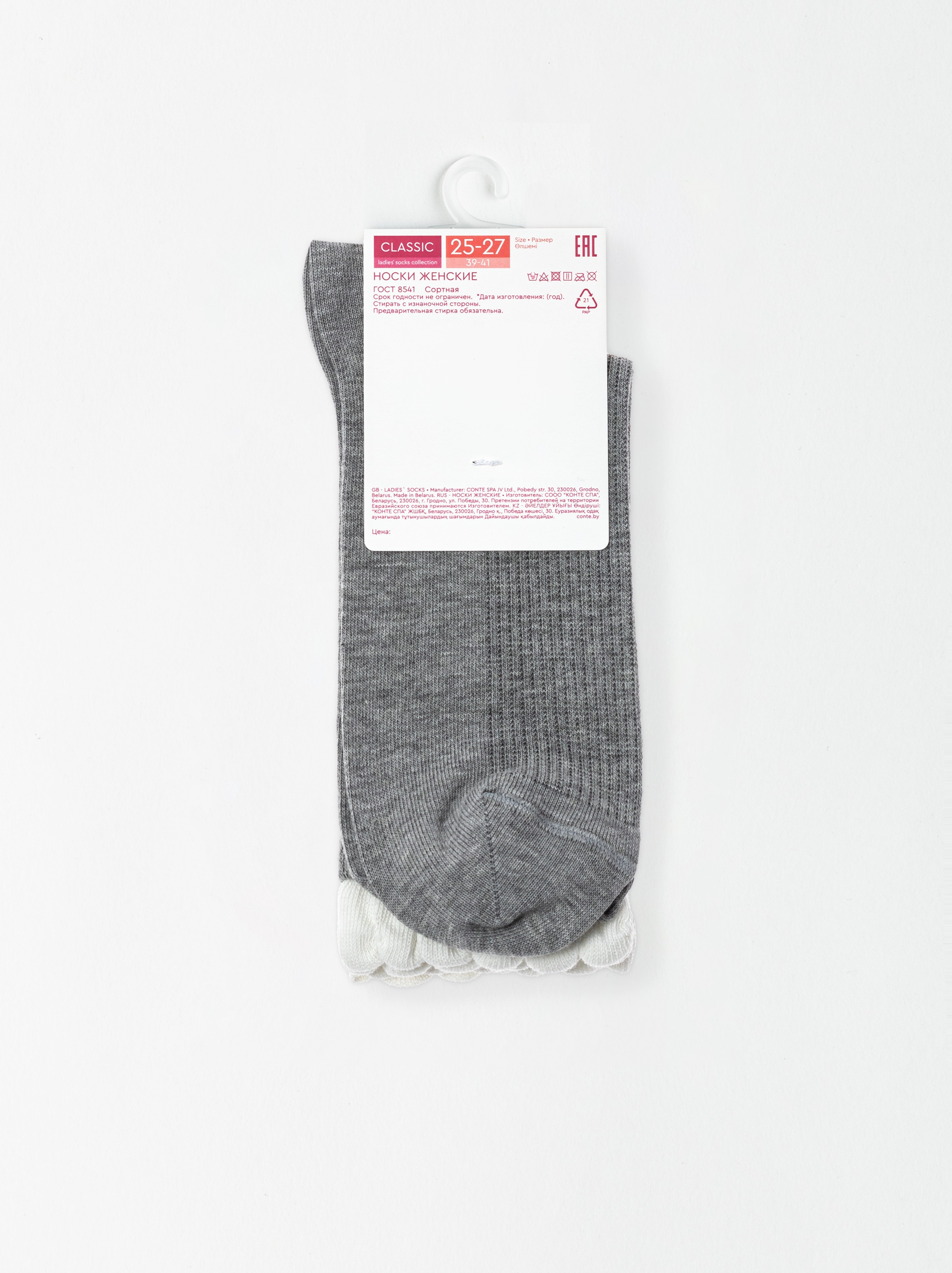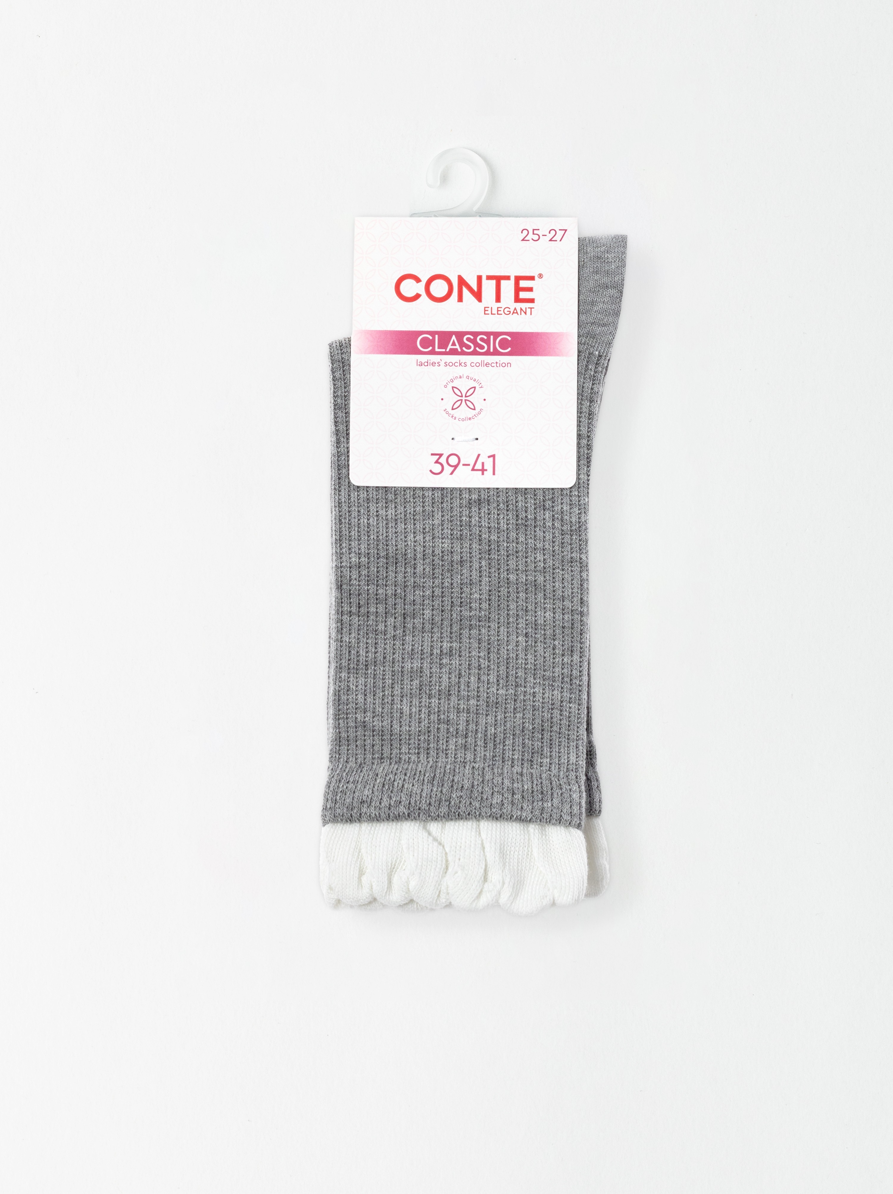 Носки в рубчик с резинкой «пикот» conte classic 967 серый, 25С-138СП, 38-41 (25-27), CONTE ELEGANT,  - 1