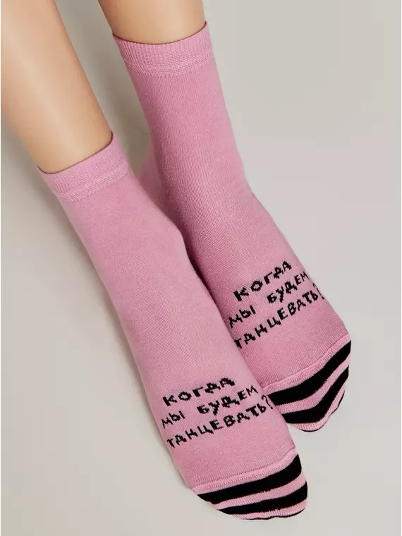 Носки женские хлопковые ESLI 582 представлены в мальвовом (светло-розовом) цвете и имеют универсальный размер 36-39. На носках изображена надпись “Когда мы будем танцевать?”, которые придают носкам особый шарм и индивидуальность. Носки выполнены из высококачественного хлопка, обеспечивающего комфорт и износостойкость.