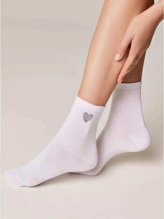 Носки женские из хлопка с сияющим рисунком "heart" 427 белый, 22С-40СП, 39-41 (25-27), CONTE ELEGANT,  - 1