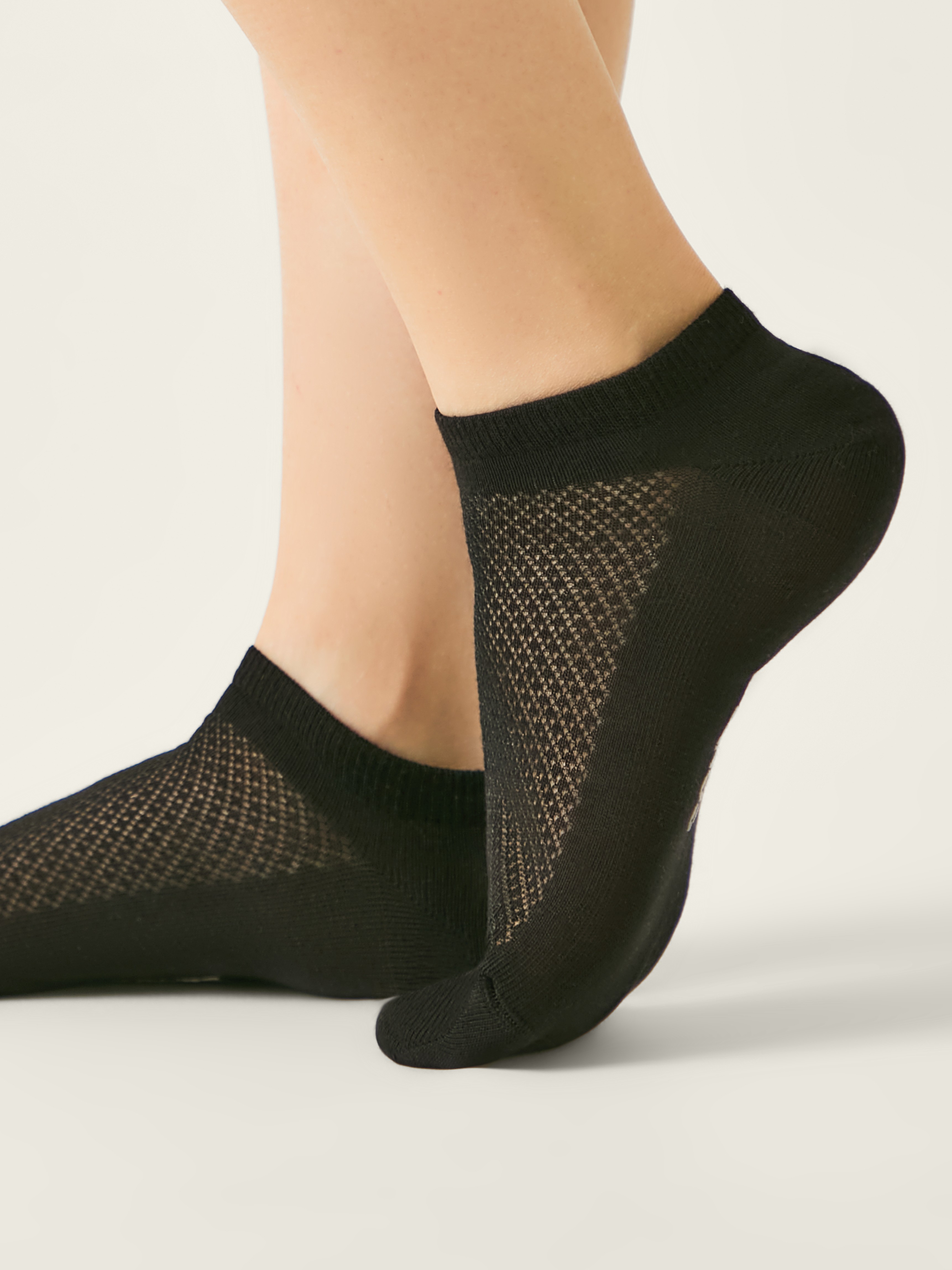 Носки женские ультракороткие CONTE ACTIVE 961 черный — практичные темные носки с ажурным плетением для спорта и повседневности. Не маркие и комфортные.