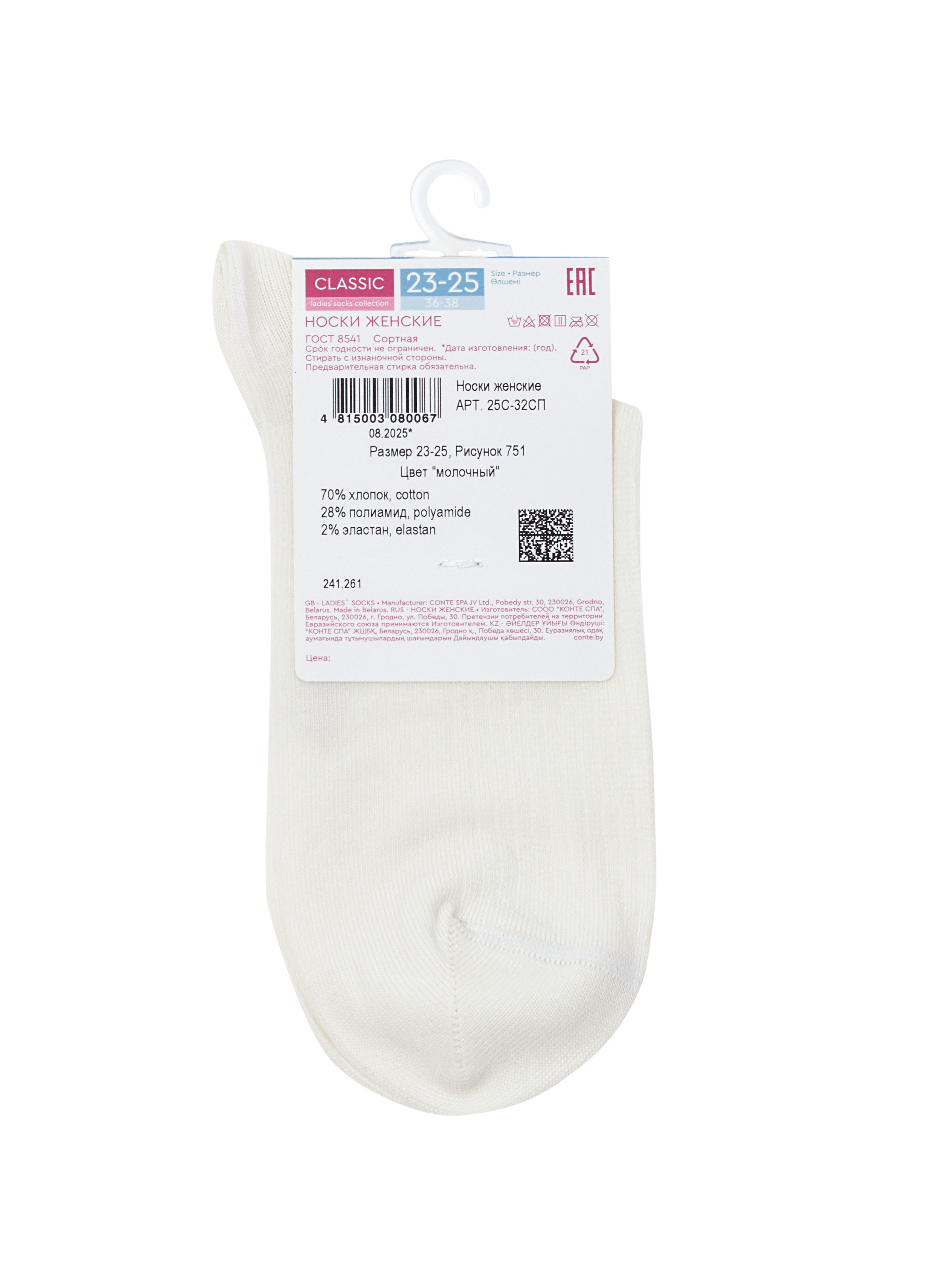 Носки CONTE CLASSIC 751 молочные — нежность и комфорт в повседневной носке