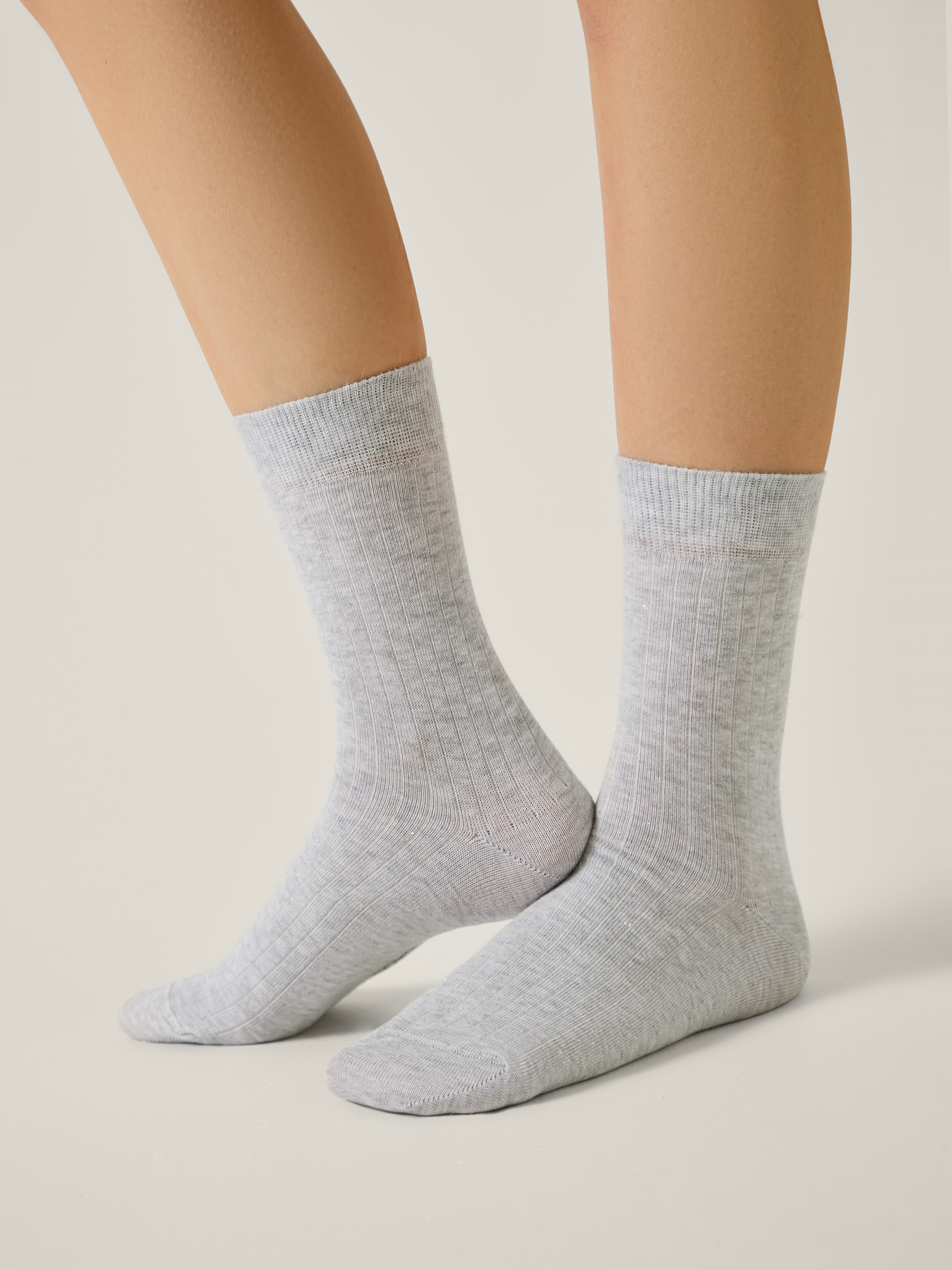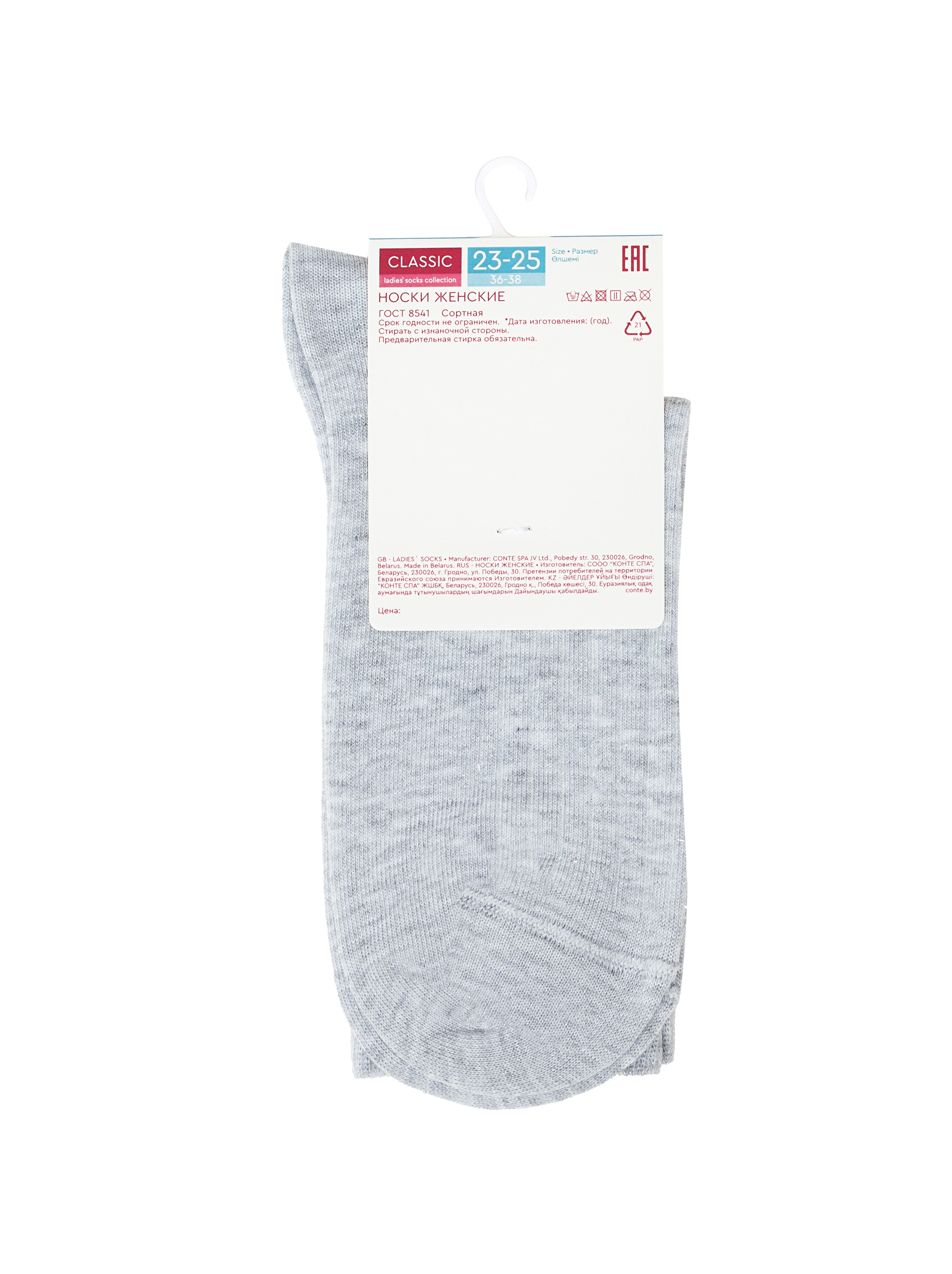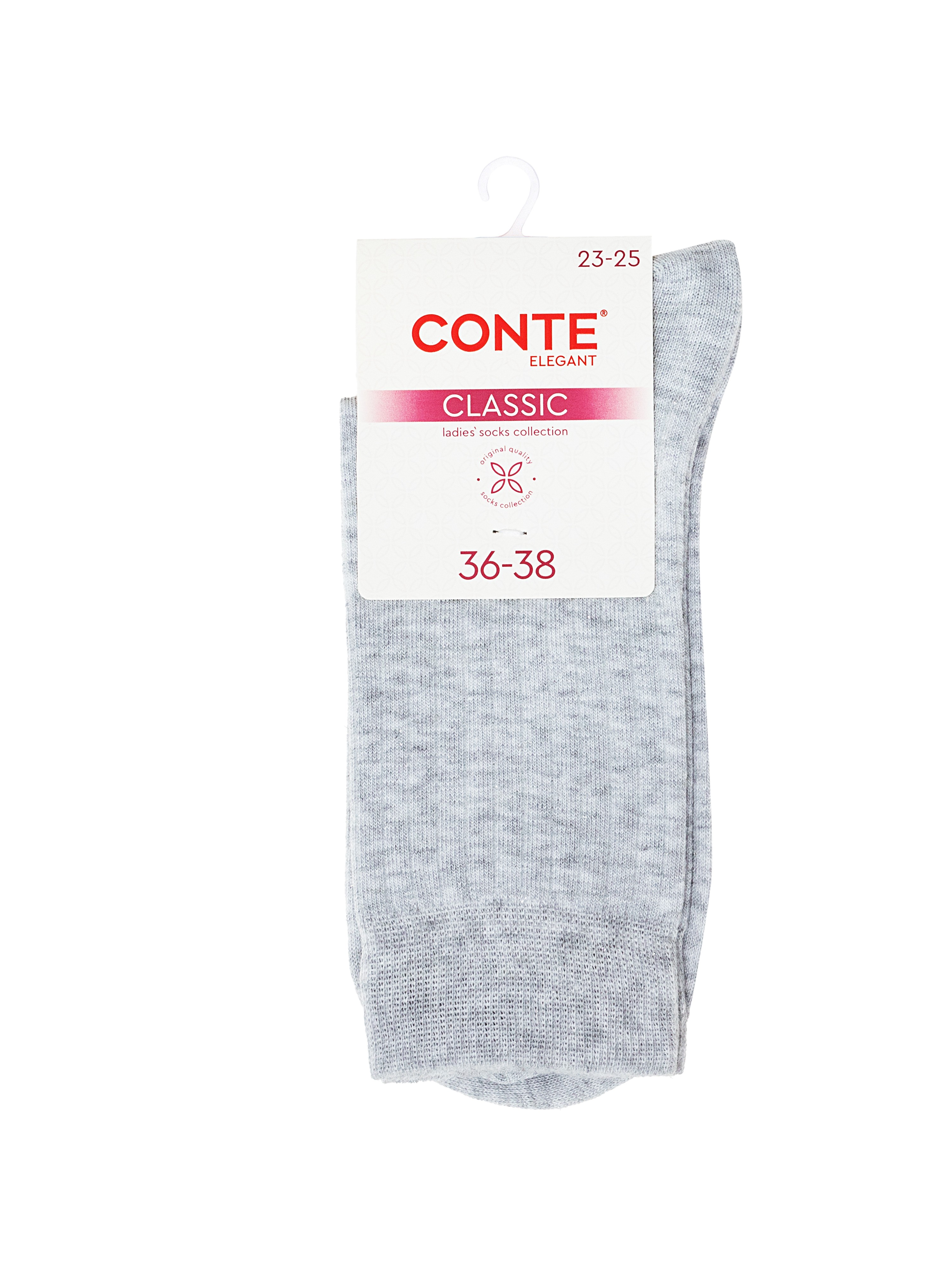 Удлинённые женские носки CONTE CLASSIC 784 светло-серый — удлиненные плотные носки с хлопком и вискозой для повседневной носки. Идеальны для делового и расслабленного стиля.