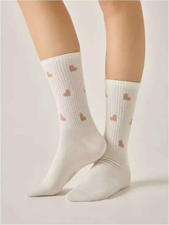 Носки CONTE ACTIVE 708 — нежный молочный цвет для уютных образов. Рисунок «сердечки» добавит шарма вашему стилю.