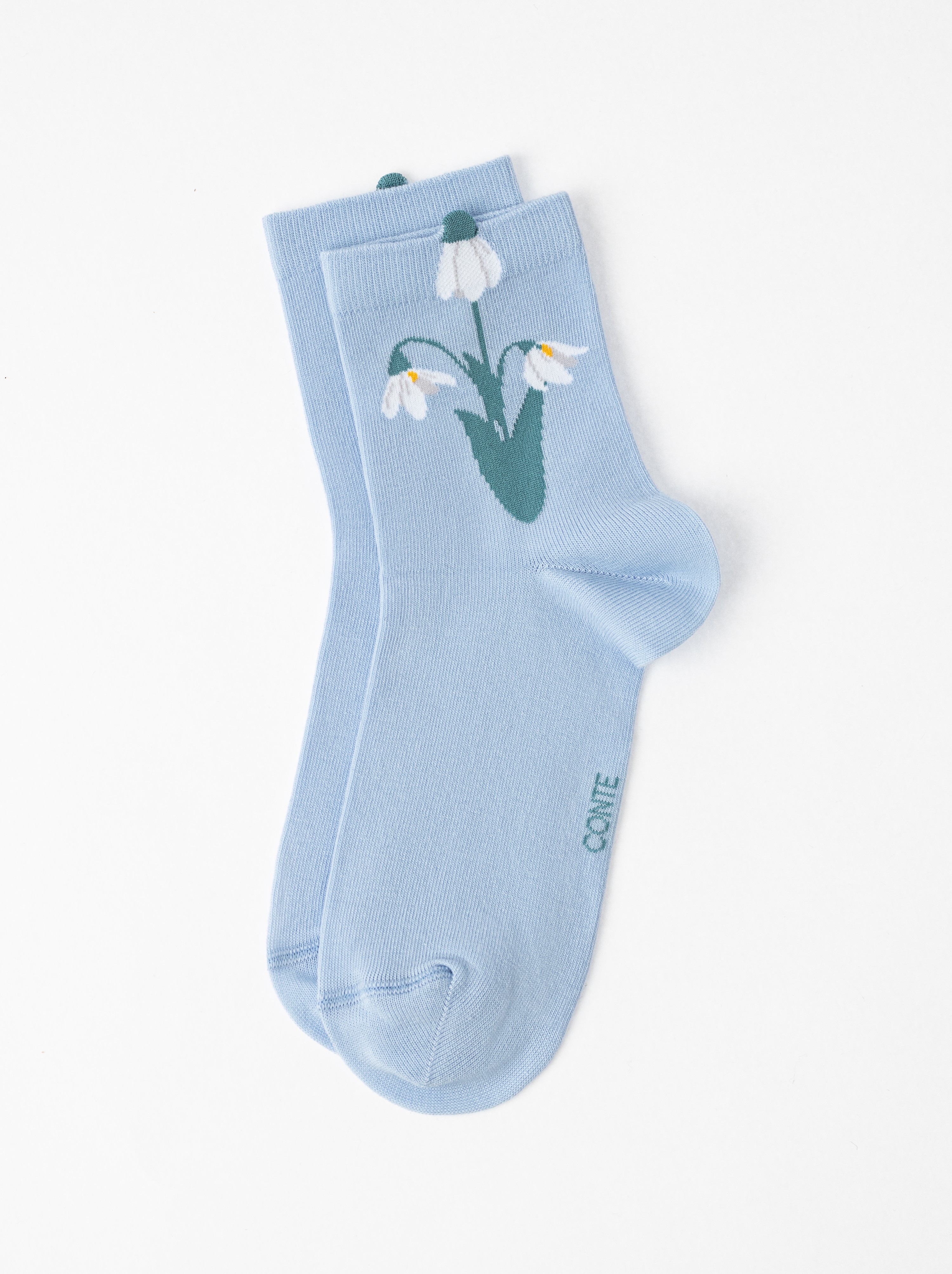 Удлинённые женские носки с пикотом «Подснежник» CONTE CLASSIC 1138 светло-голубой