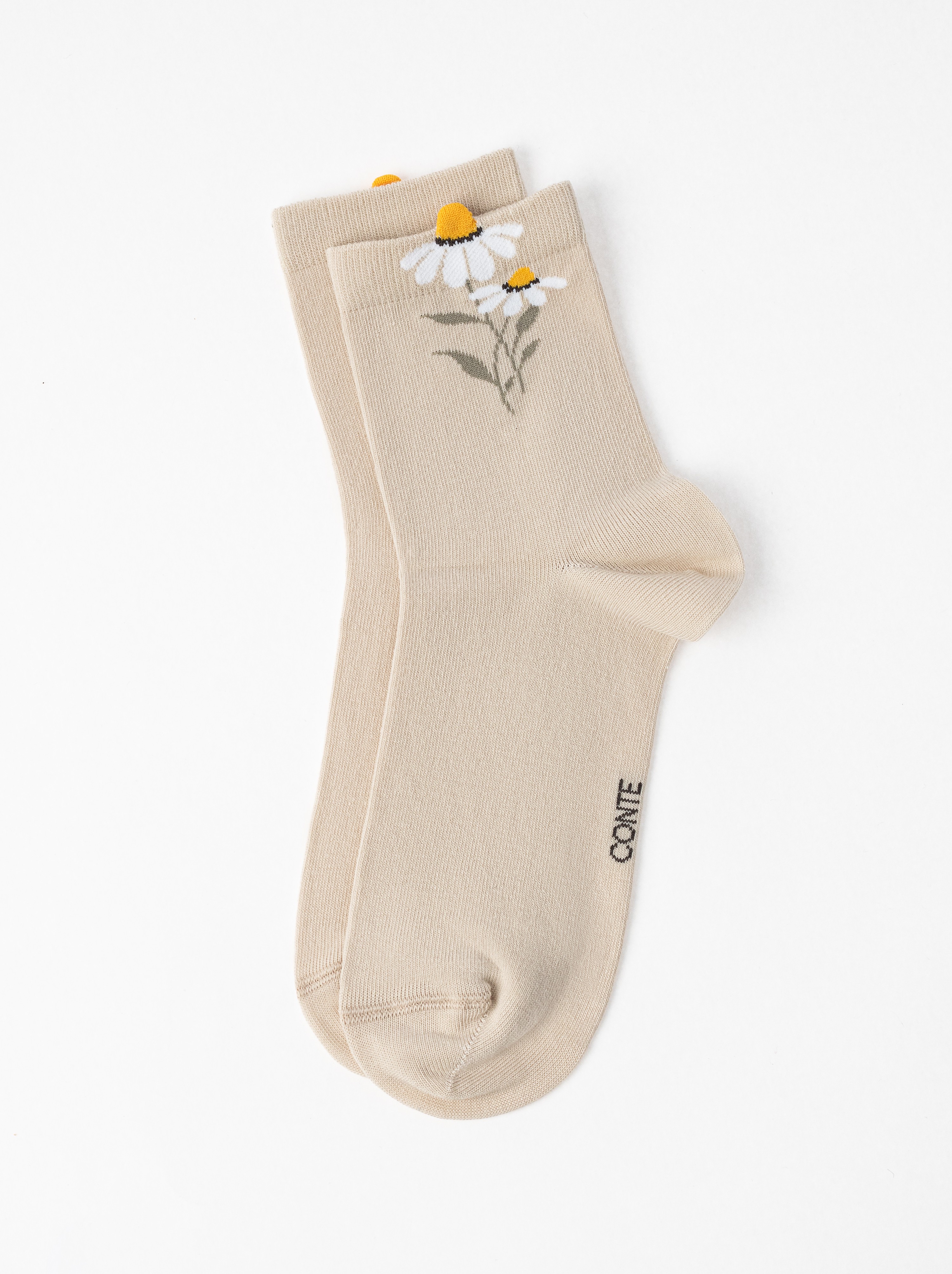 Удлинённые женские носки с пикотом «Ромашки» CONTE CLASSIC 1154 бежевый