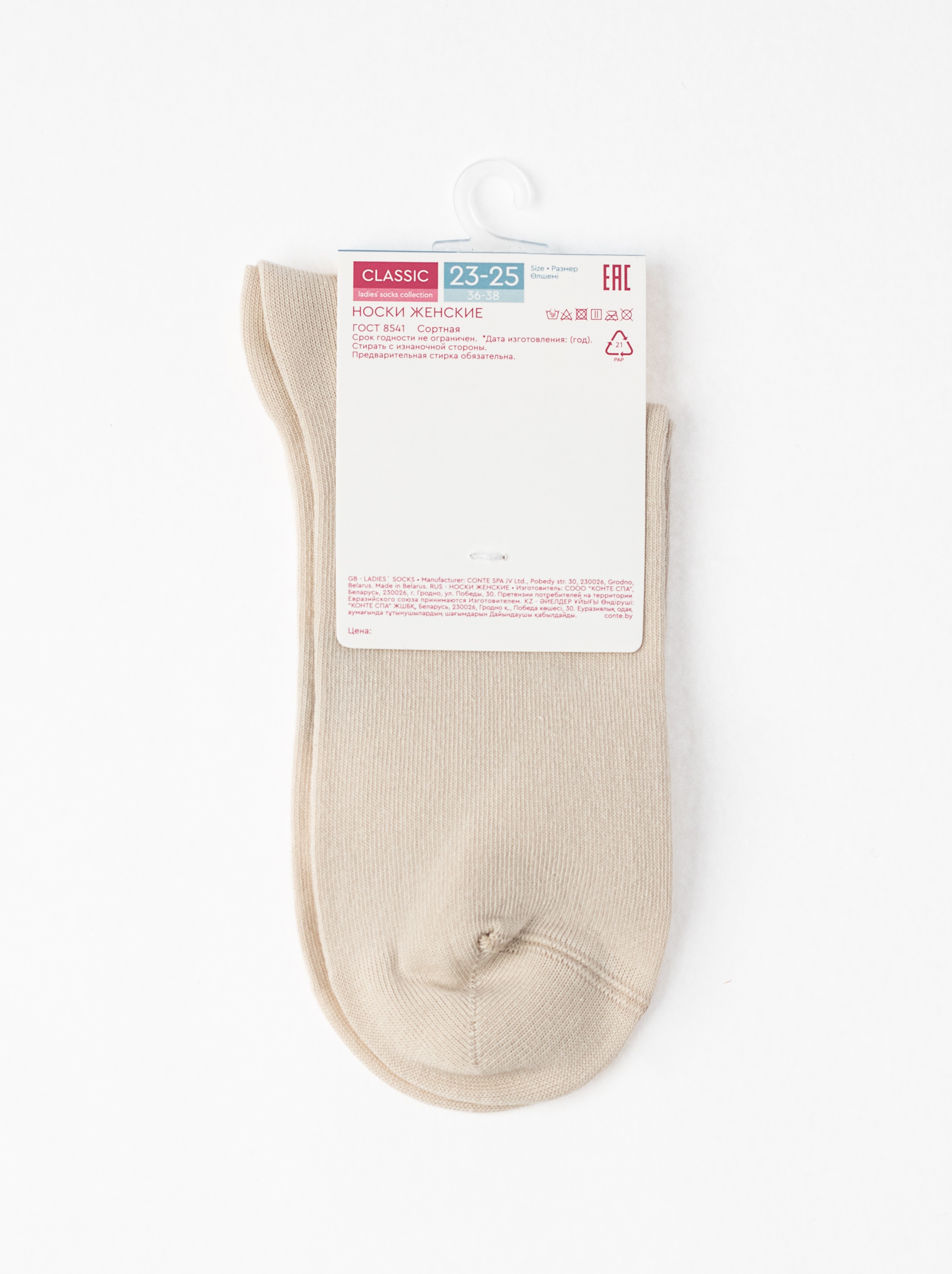 Удлинённые женские носки с пикотом «ромашки» conte classic 1154 бежевый, 17С-183СП, 36-39, CONTE ELEGANT,  - 1