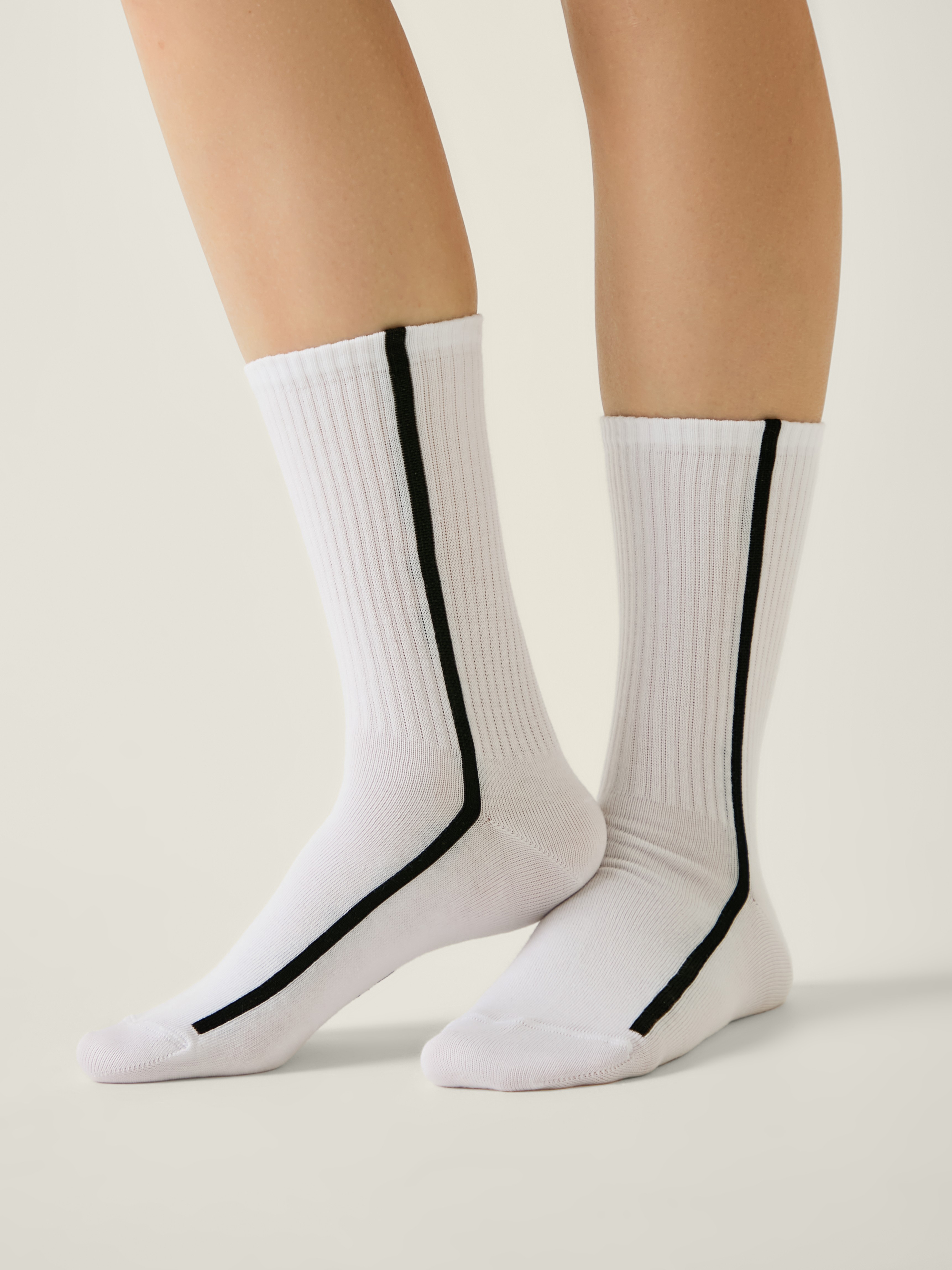Удлиненные женские носки CONTE ACTIVE 965 белый — удобные хлопковые носки с удлиненным паголенком для повседневной носки.