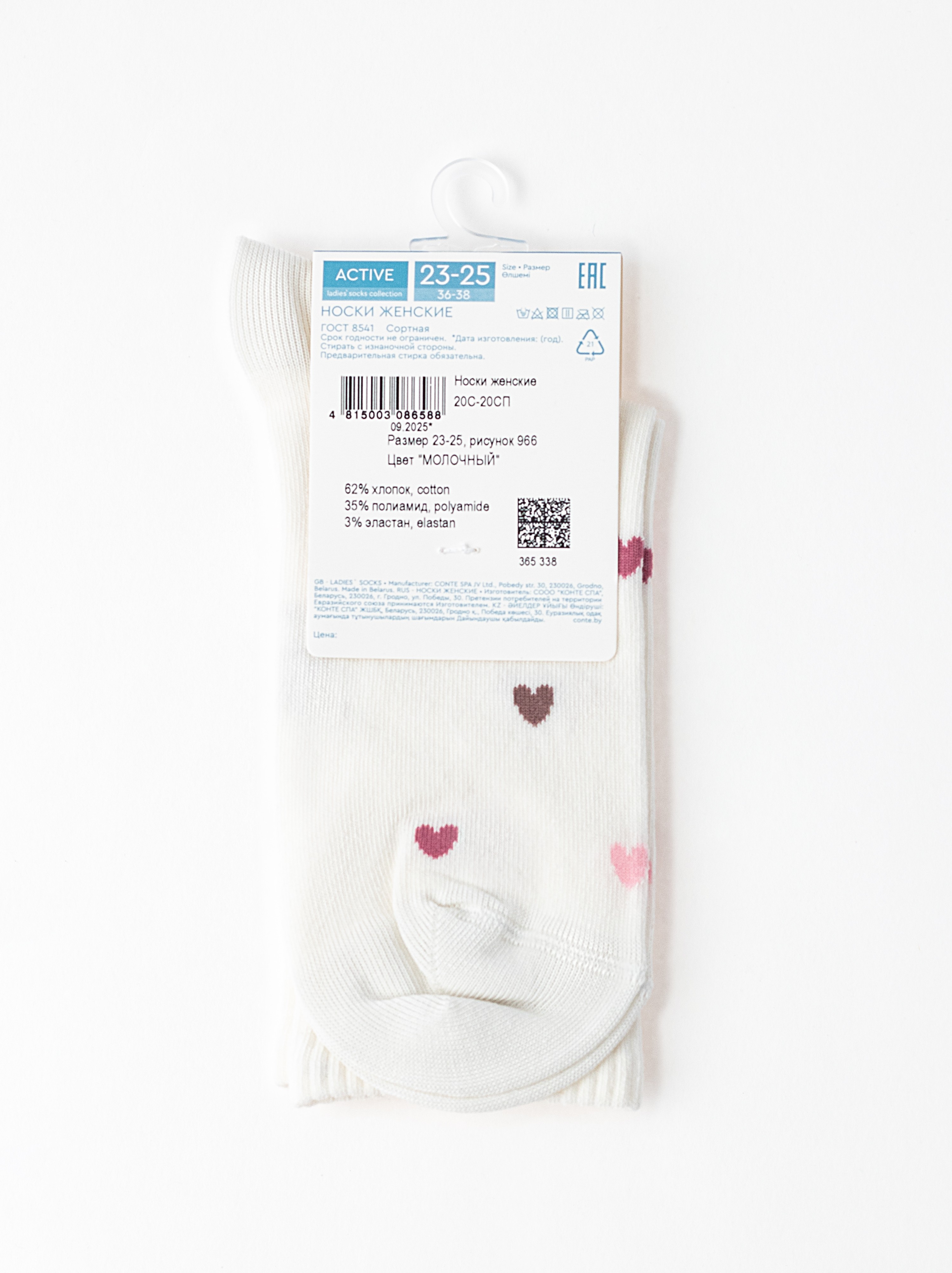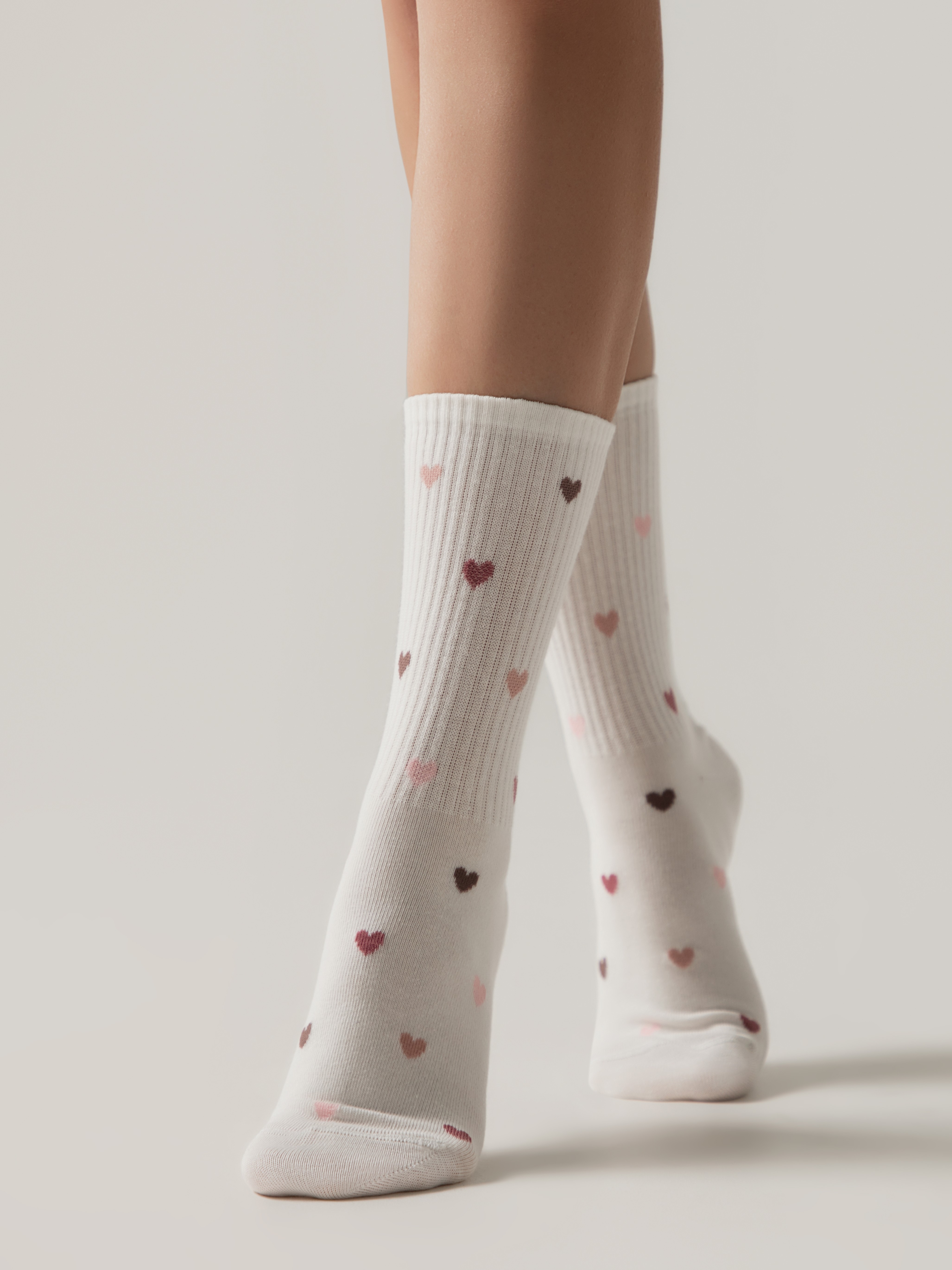 Активность в стиле! Удлиненные носки ACTIVE с сердечками обеспечат идеальную посадку и не сползут даже при высокой нагрузке. Мягкий хлопок и нежный дизайн для вашего дня!