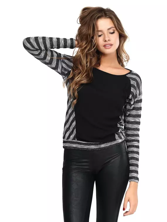 Элегантно-непринужденный джемпер из мягкого трикотажного полотна с содержанием вискозы. Изделие интересного дизайна идеально впишется ваш гардероб и станет неизменной частью casual образов. Вырез горловины "лодочка" самый популярный вид оформления в стиле нью-лук - подчеркивает женственные покатые плечи, зрительно удлиняя шею. Оригинальность джемперу придает ткань с тактичным металлическим блеском, полученным нитью люрекса. Длинный рукав, плавно спущенная линия плеча, свободный крой, сдержанная цветовая гамма - модель идеально подходит как для непринужденных вечеринок, так и для торжественных мероприятий.